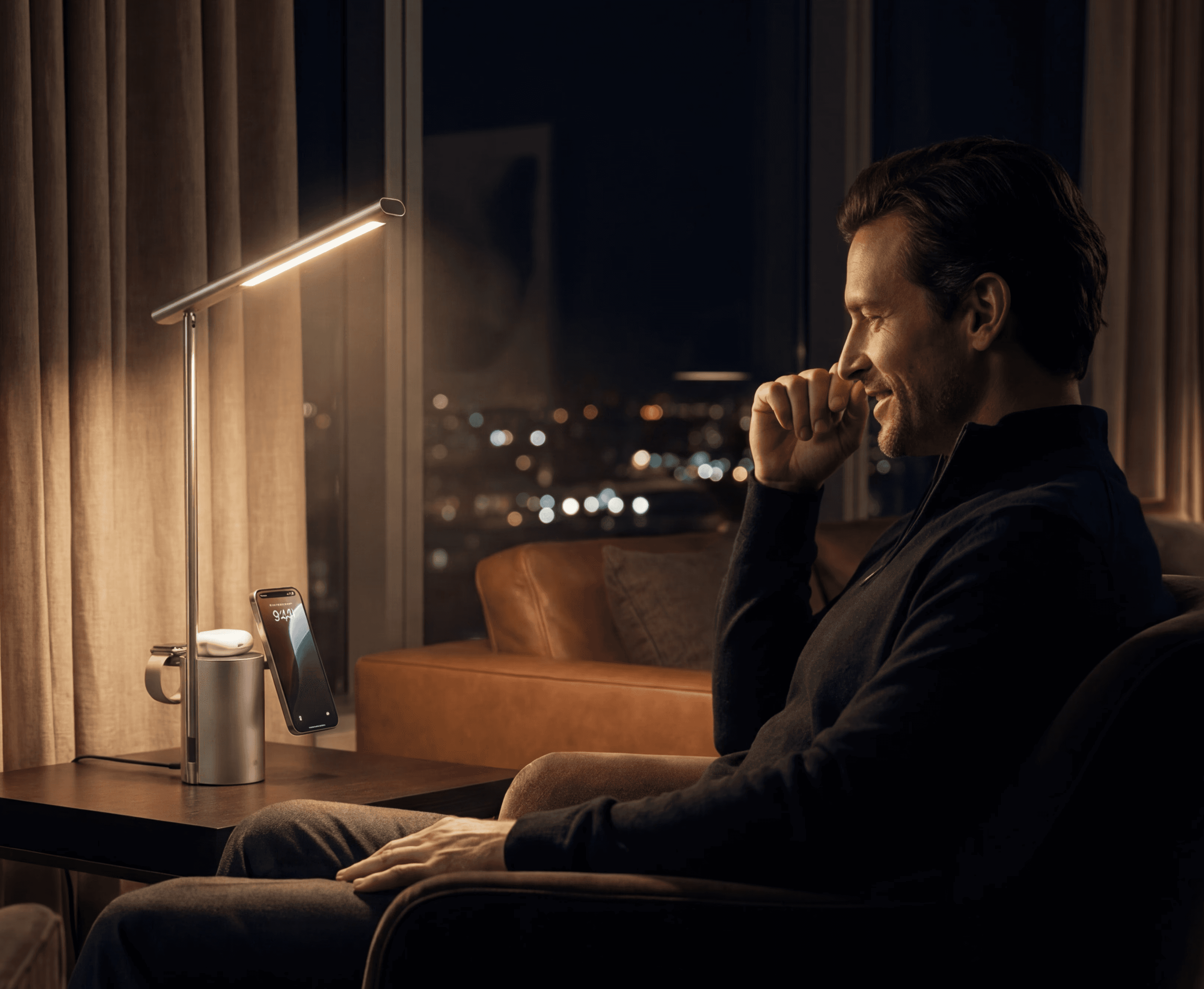 Start your day with gentle, balanced light while your phone wakes you up — fully charged and ready. The perfect morning setup for alarms, messages, and a calm start.